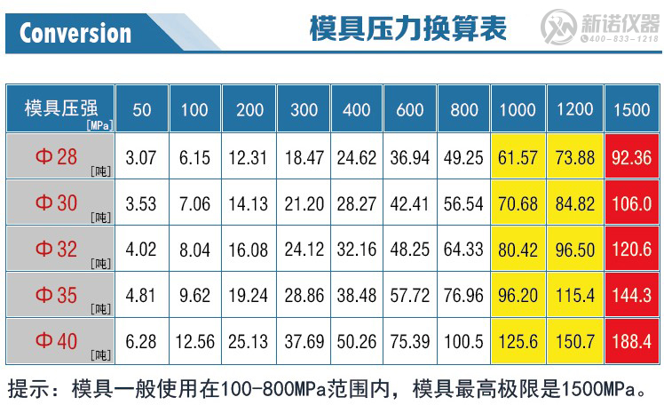 警示!!!模具承压范围一般小于800Mpa内使用,超压使用需谨慎操作。